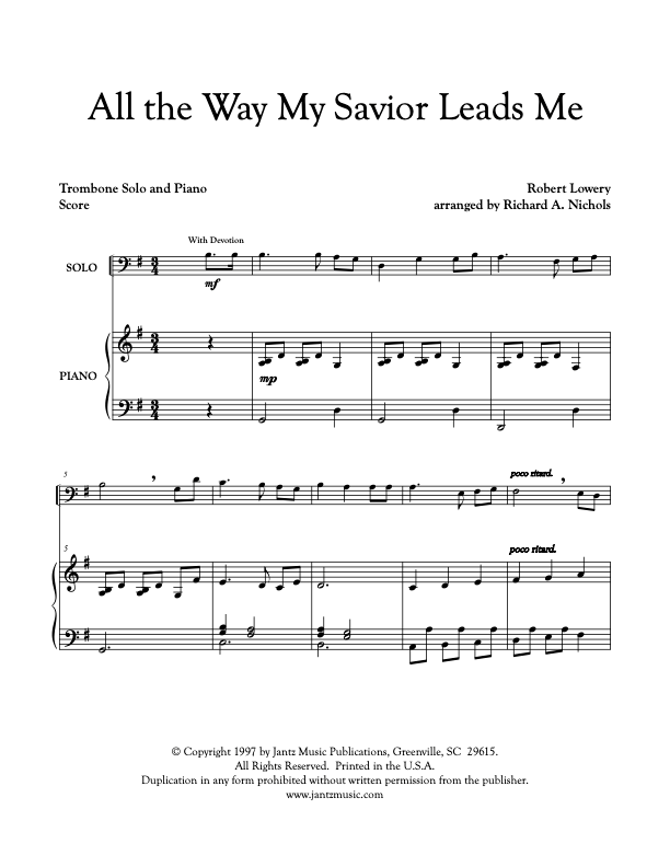 Trombone solo with piano accompaniment. A simple, flowing setting of this great hymn about God’s guidance and care in our lives.