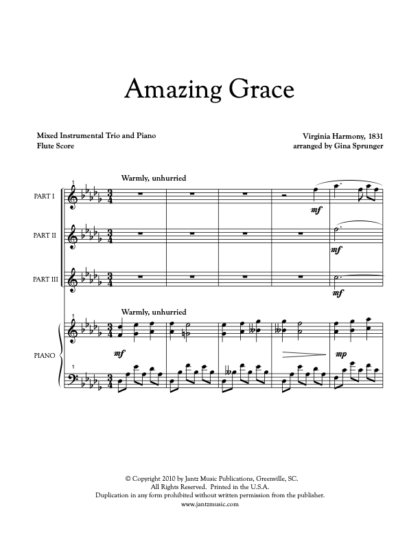 Flute trio with piano accompaniment. A fresh setting of this popular hymn that builds to an exciting climax and ends quietly.