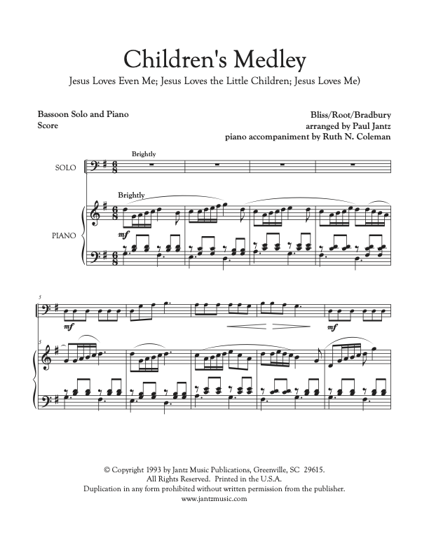 Bassoon solo with piano accompaniment. A flowing medley of three children’s songs reminding us of God’s love – ‘Jesus Loves Even Me,’ ‘Jesus Loves the Little Children,’ and ‘Jesus Loves Me.’
