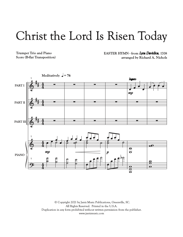 Trumpet trio with piano accompaniment. A spirited new setting of one of our most popular Easter hymns.