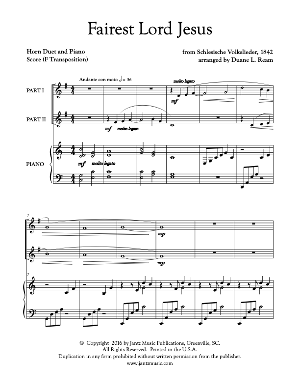 Horn duet with piano accompaniment. A beautiful, flowing arrangement reminding us of our beautiful Savior.