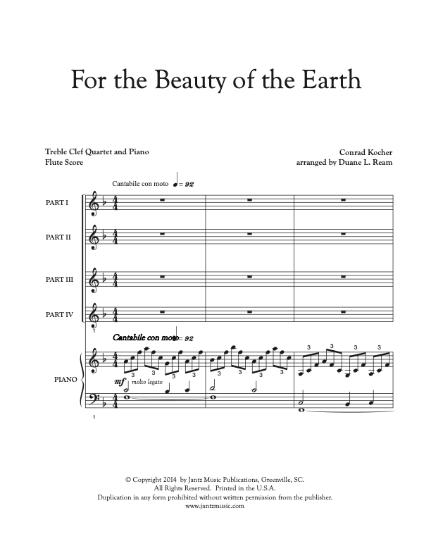 A four-part arrangement for flutes with piano accompaniment. A beautiful setting of this old familiar ‘hymn of grateful praise.’