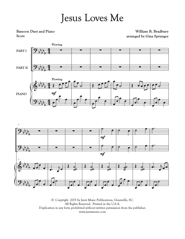 Bassoon duet with piano accompaniment. A flowing arrangement reminding us all of the love Jesus has for us.