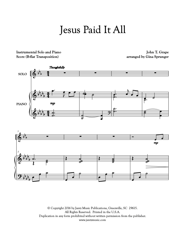 Jesus Paid It All - Trumpet Solo