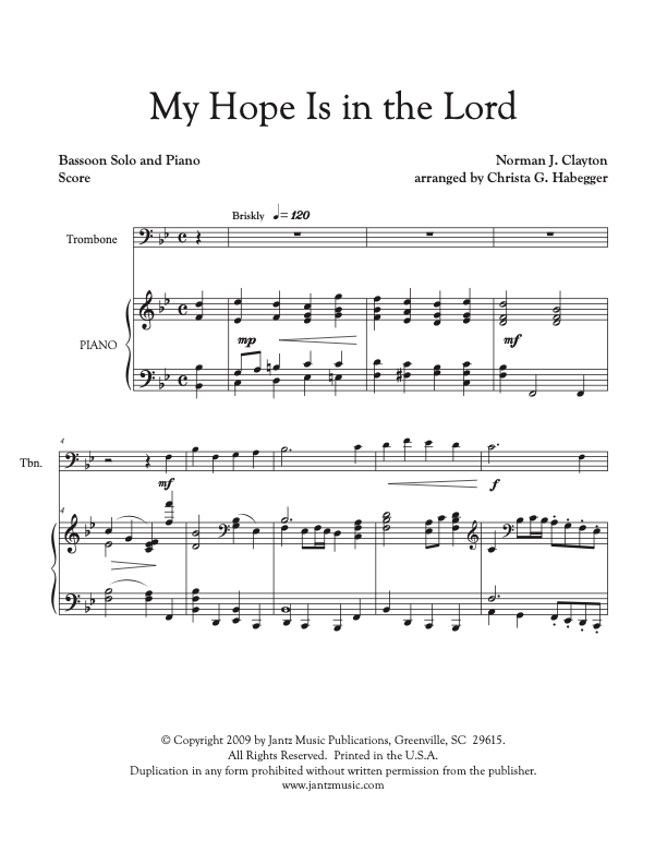Bassoon solo with piano accompaniment. A simple statement of our hope in the Lord and His provision of salvation.
