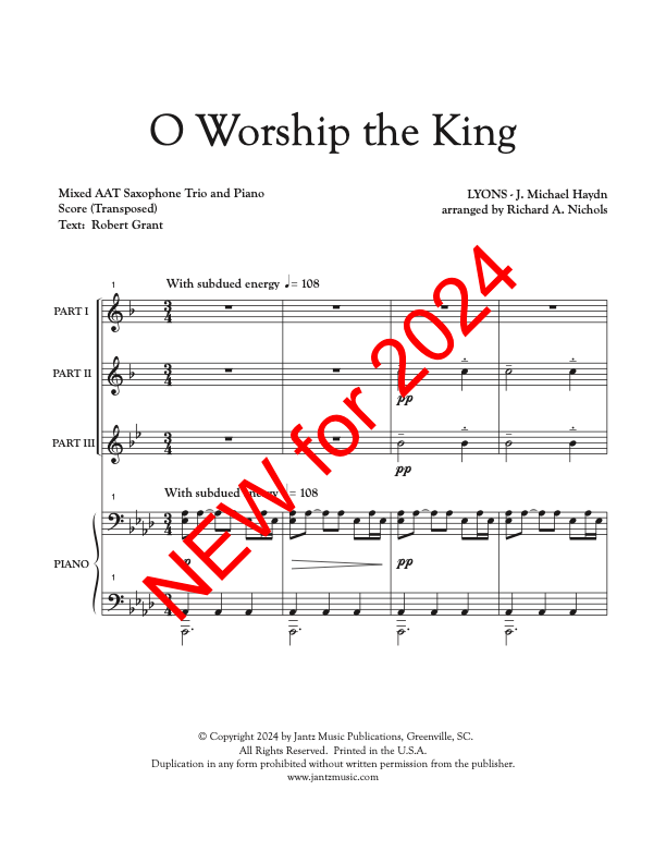Mixed saxophone trio of two alto saxophones and one tenor saxophone with piano accompaniment. This great hymn of worship comes alive in this exciting new setting by Richard Nichols.