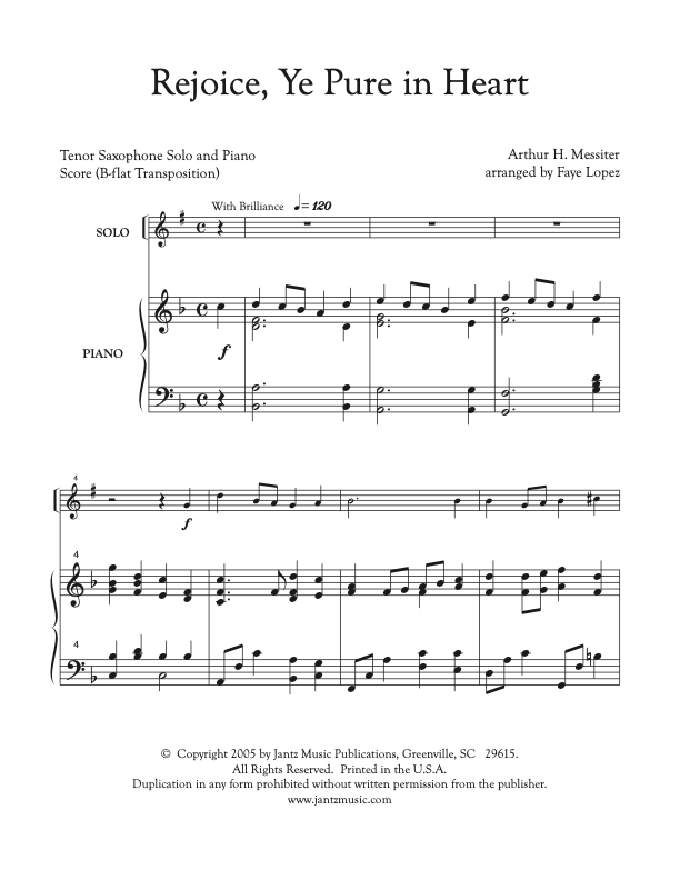 Rejoice, Ye Pure in Heart - Tenor Saxophone Solo