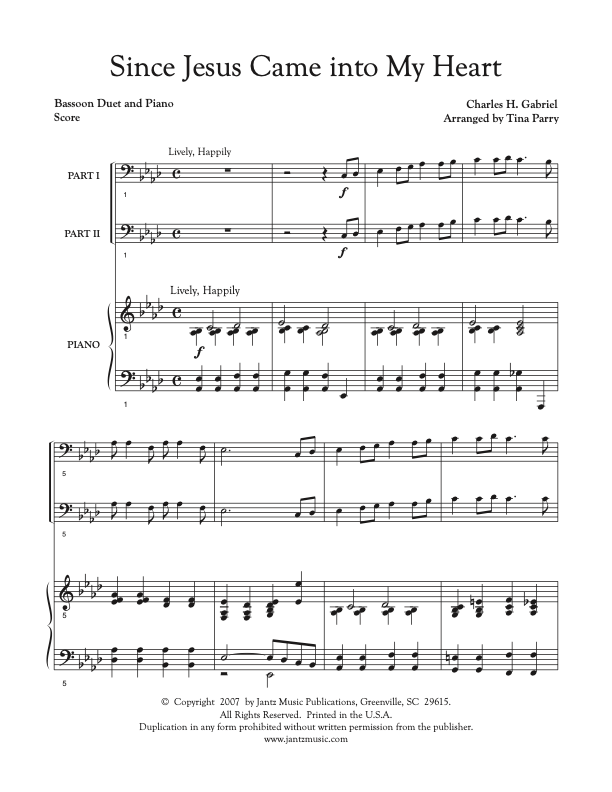 Bassoon duet with piano accompaniment. An energetic setting of this well-known song of testimony.