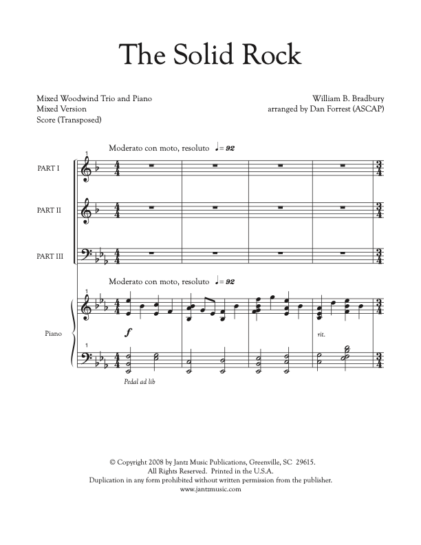Mixed woodwind trio of two clarinets and one bassoon with piano accompaniment. A bright arrangement of this popular hymn that reminds us our hope is built on Christ.